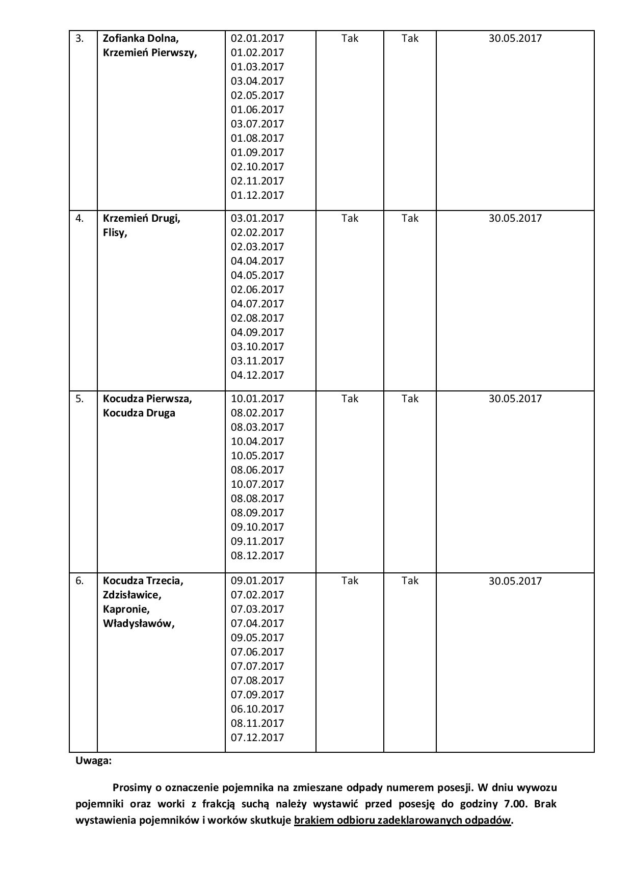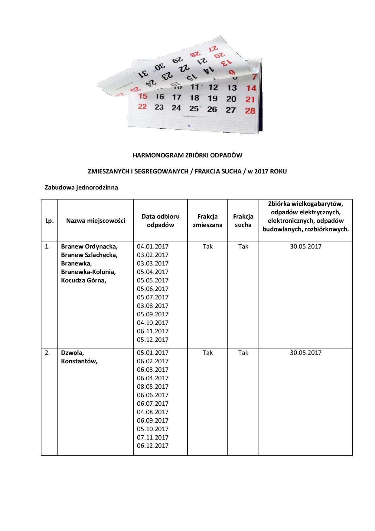 Harmonogram zbiórki odpadów w 2017 roku