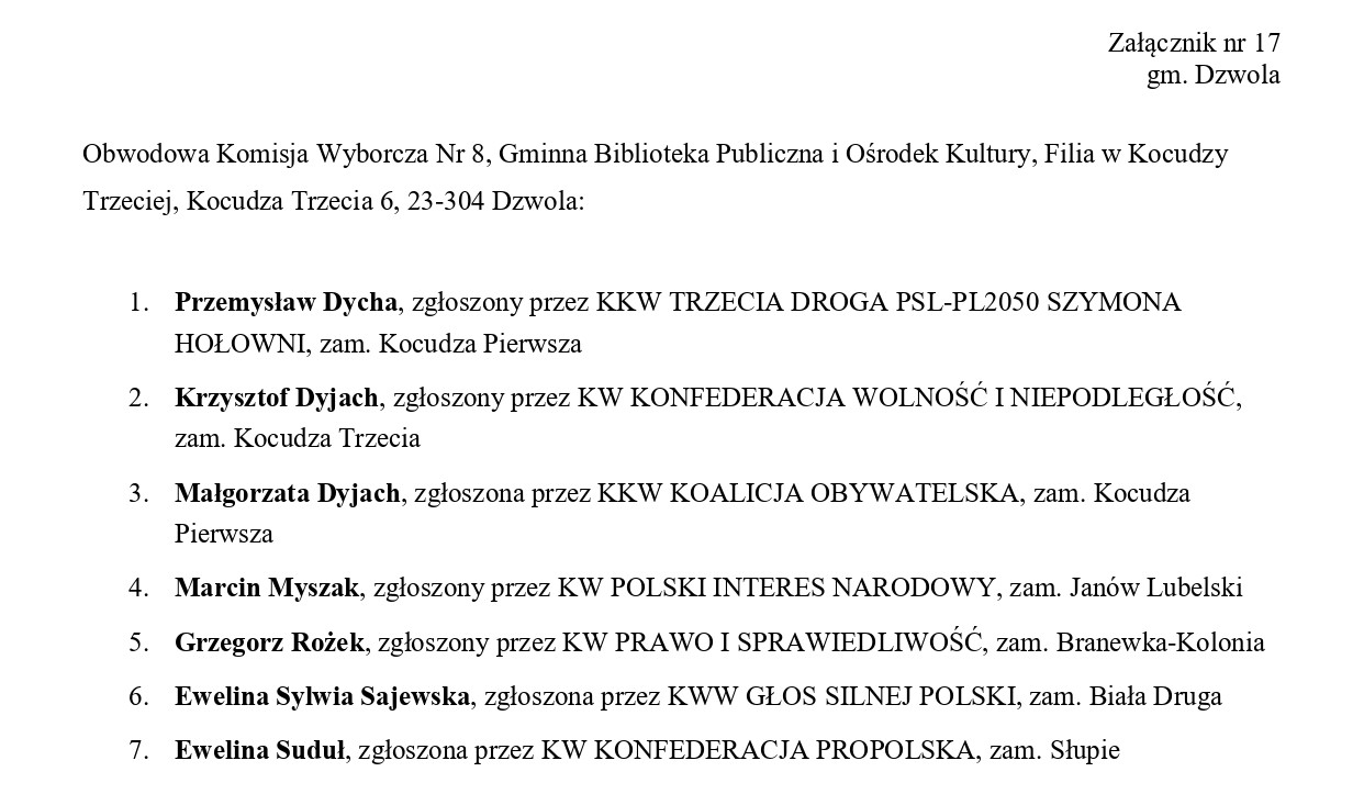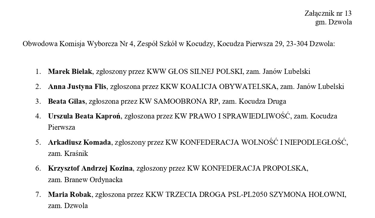 Obwodowe Komisje Wyborcze – gmina Dzwola