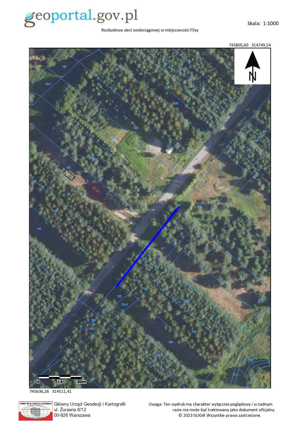 5. Rozbudowa sieci wodociągowej w miejscowości Flisy (przy drodze powiatowej od ostatniego przyłącza w kierunku Porytowego Wzgórza).