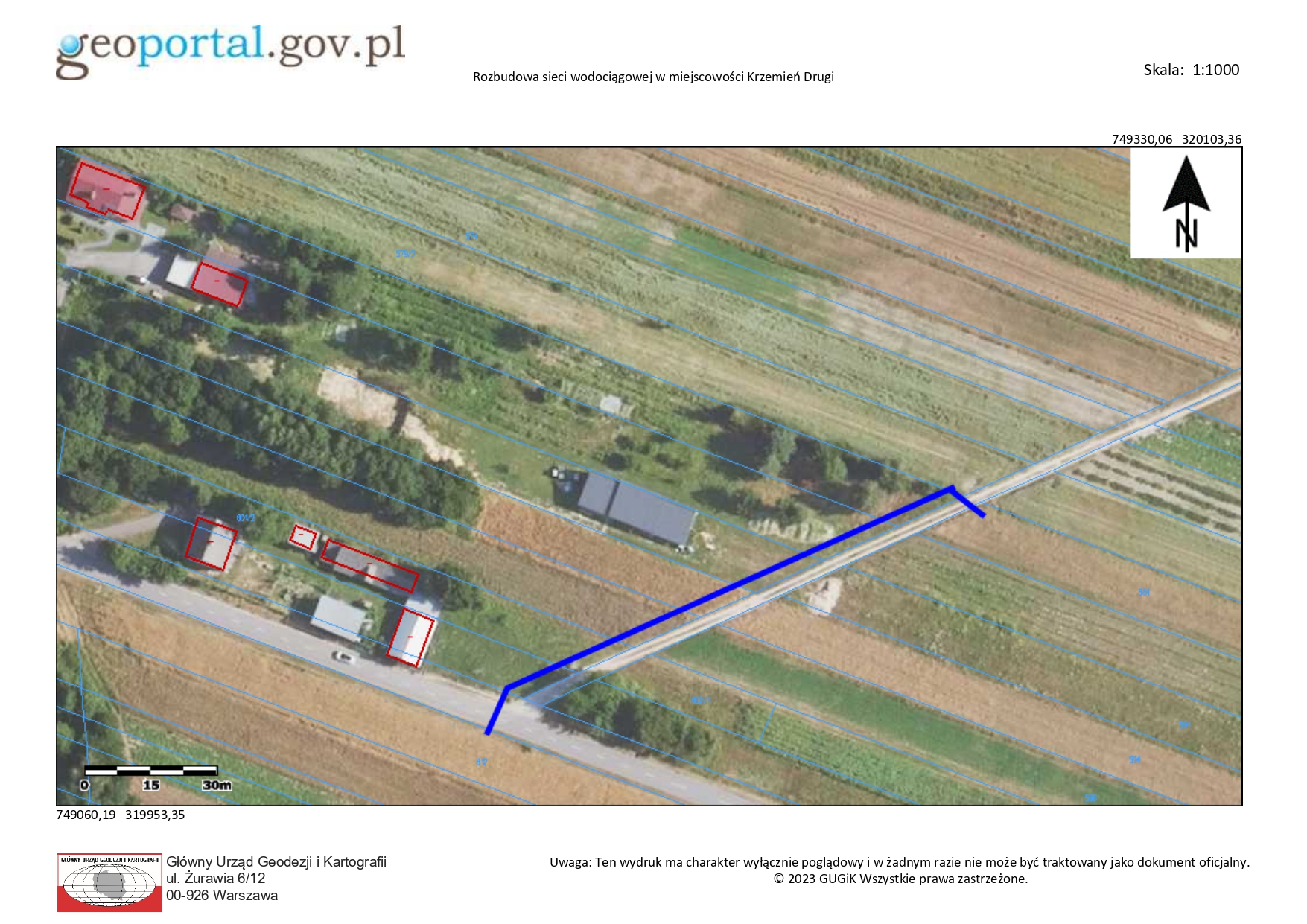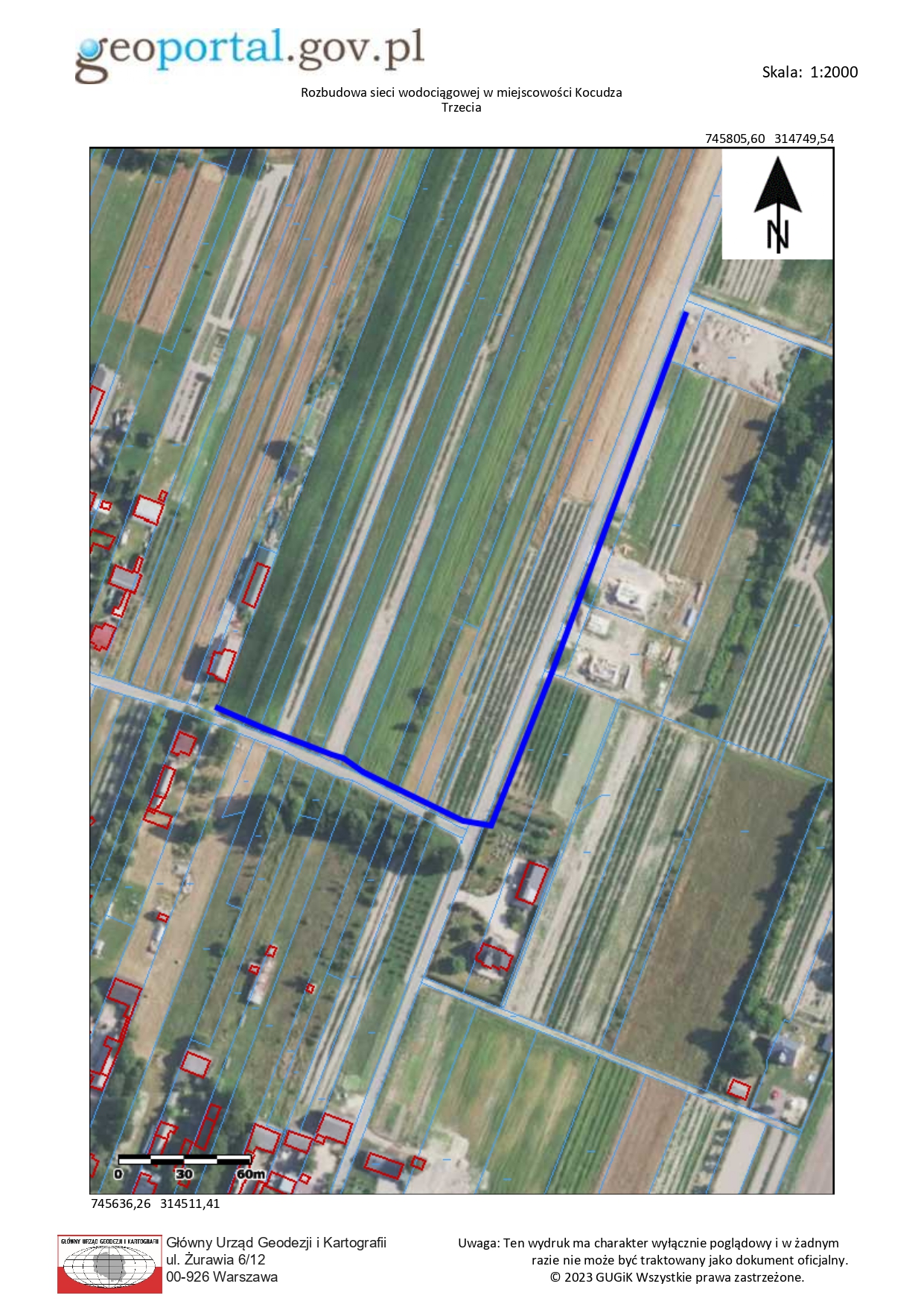 2. Rozbudowa sieci wodociągowej w miejscowości Kocudza Druga (przy drodze gminnej nr 109012L).