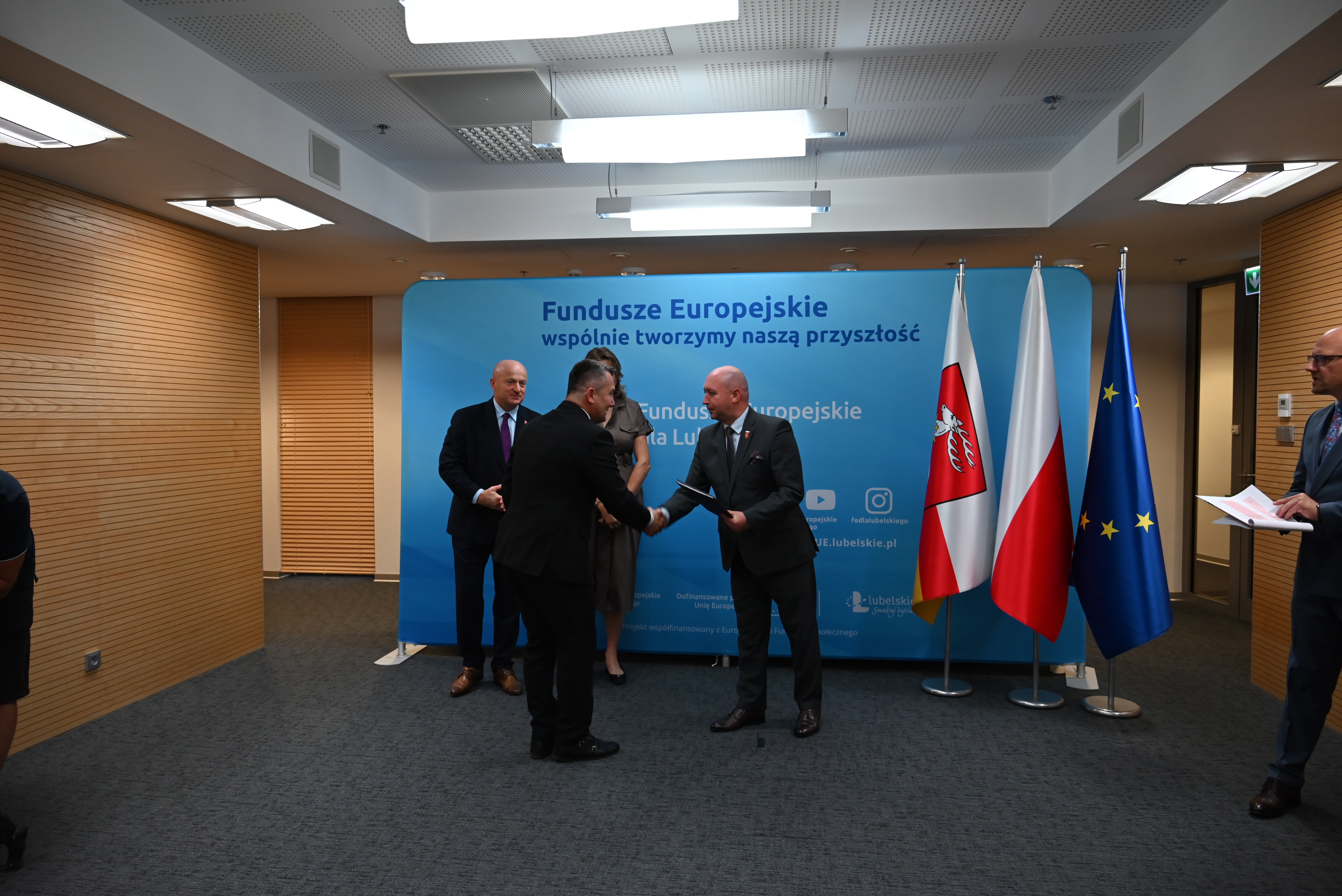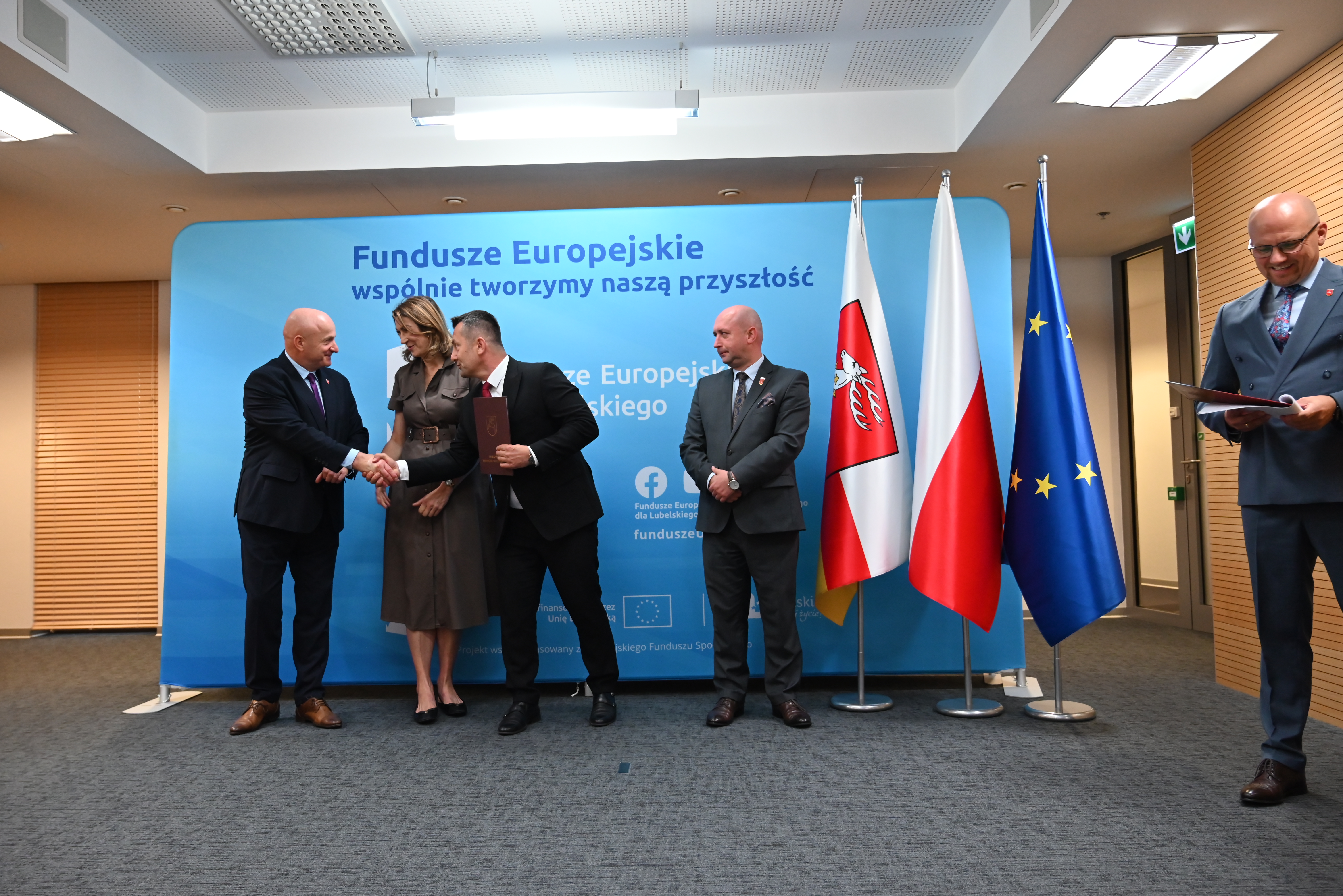 Marszałek Województwa Lubelskiego Jarosław Stawiarski oraz Wicemarszałek Piotr Breś wręczyli Wójtowi Gminy Dzwola Wiesławowi Dyjachowi umowę o dofinansowanie projektu wybranego w ramach naboru konkurencyjnego nr FELU.11.04-IZ.00-001/24, pn. „Kompleksowa rewitalizacja obszarów zdegradowanych na terenie Gminy Dzwola”.