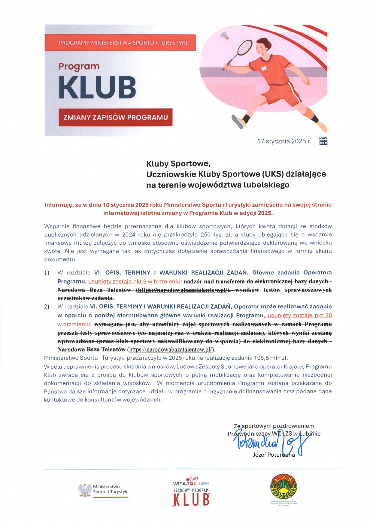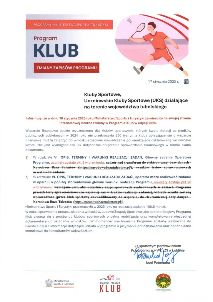 Zmiany w Rządowym Programie KLUB Opublikowano dnia: 22 stycznia 2025 - 09:22 Zmiany w Rządowym Programie KLUB. Liczba wyświetleń: 4